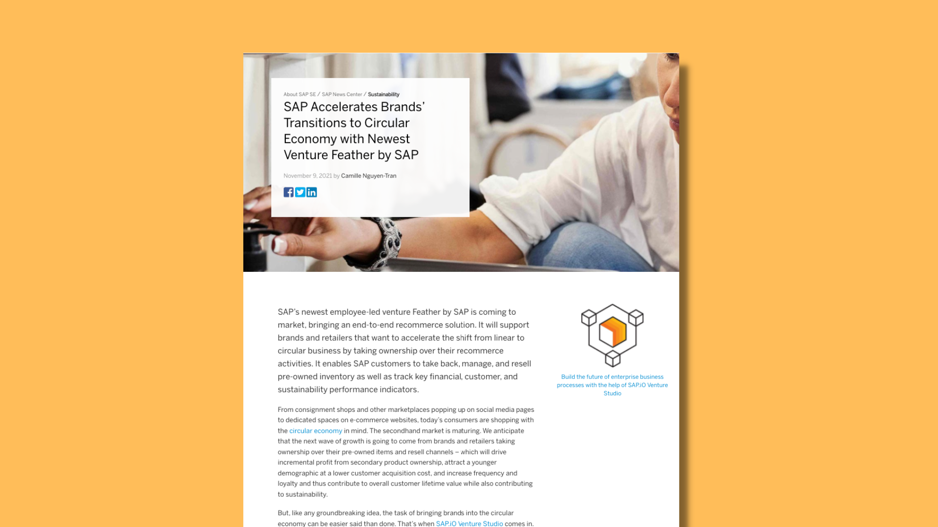 Article: SAP accelerates brands’ transitions to circular economy with newest venture Feather by SAP